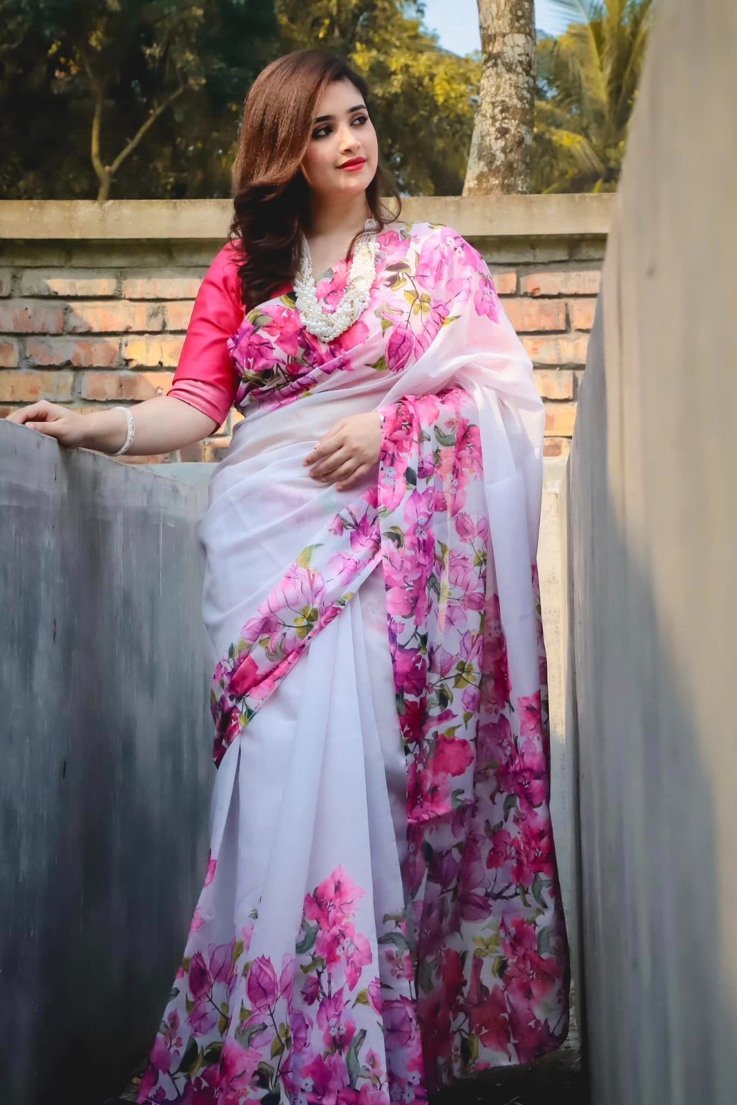 Features intricate digital print work, adding elegance and sophistication to the saree. - Blouse Piece: